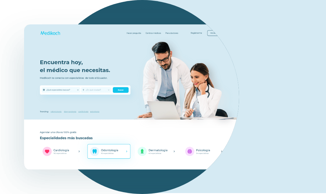 Medikoch es la plataforma con mayor cantidad de profesionales de la salud que brindan su servicio en varias ciudades del ecuador.